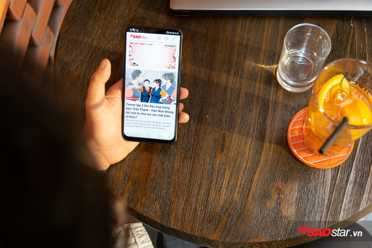 Dù sở hữu màn hình 6,2 inch tỷ lệ 19:9 cùng độ phân giải Full HD (2.246 x 1.080 pixel) khá tương đồng với đối thủ cùng phân khúc nhưng chất lượng hiển thị của máy xứng đáng nhận được lời khen. Máy cho hình ảnh trong trẻo, độ tương phản cao, màu sắc hiển thị chính xác. Độ sáng ở cả mức tối thiểu lẫn tối đa đều rất tốt, bạn có thể dễ dàng trải nghiệm nội dung trên máy ở nhiều điều kiện khác nhau từ ban đêm đến ngoài trời.