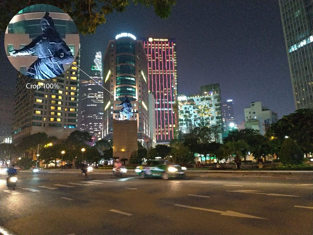 Máy giữ chi tiết khi chụp đêm khá tốt, nhiễu hạt ở mức chấp nhận được.
