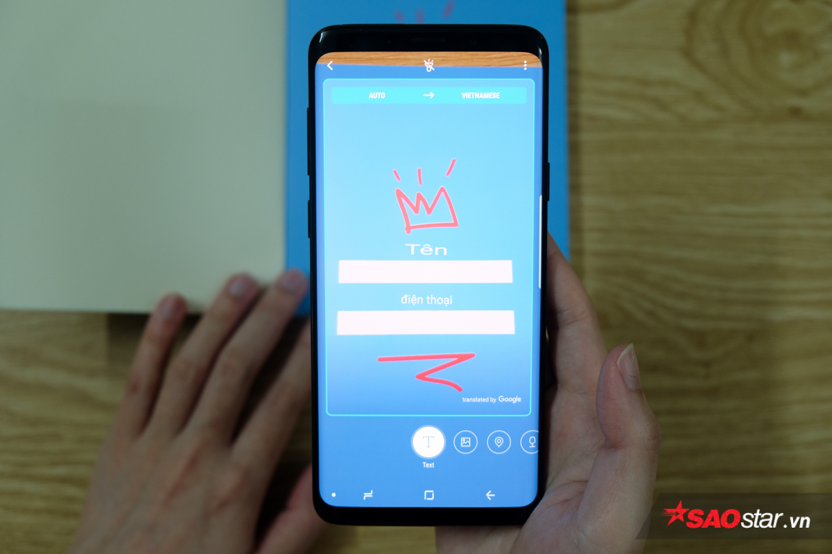 Với tính năng dịch thuât theo thời gian thực Bixby Live Translation, bạn chỉ cần dùng camera trên điện thoại và hướng về phía ngôn ngữ cần dịch thuật, Samsung Galaxy S9+ sẽ nhanh chóng dịch thuật theo thời gian thực. Thử nghiệm thực tế cho thấy, máy có khả năng nhận diện và thực hiện việc dịch thuật khá nhanh. Tính năng này sẽ rất tiện trong trường hợp bạn đi du lịch nước ngoài, muốn chuyển ngôn ngữ các tên đường, menu đồ ăn,…