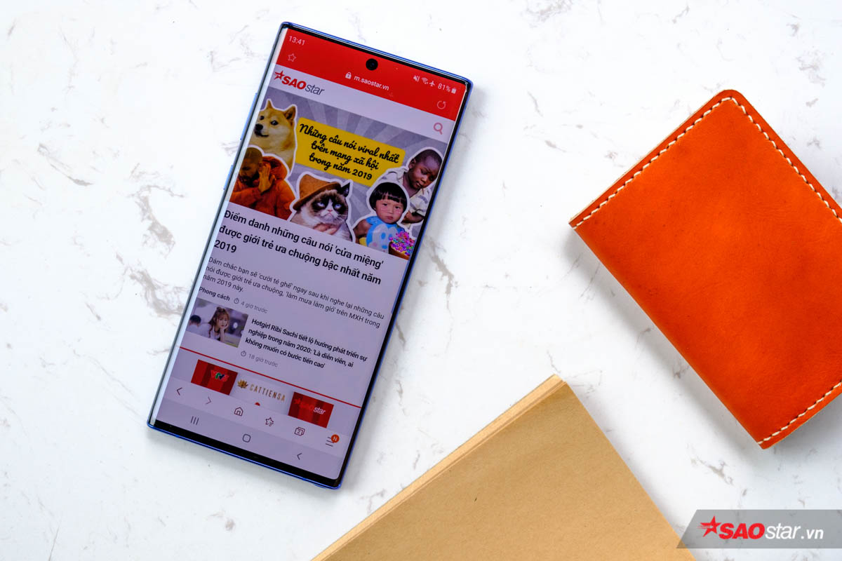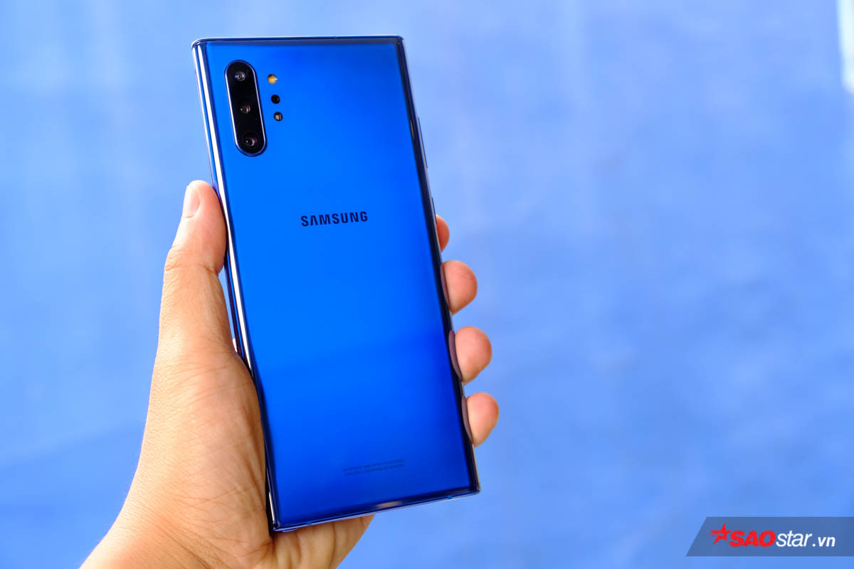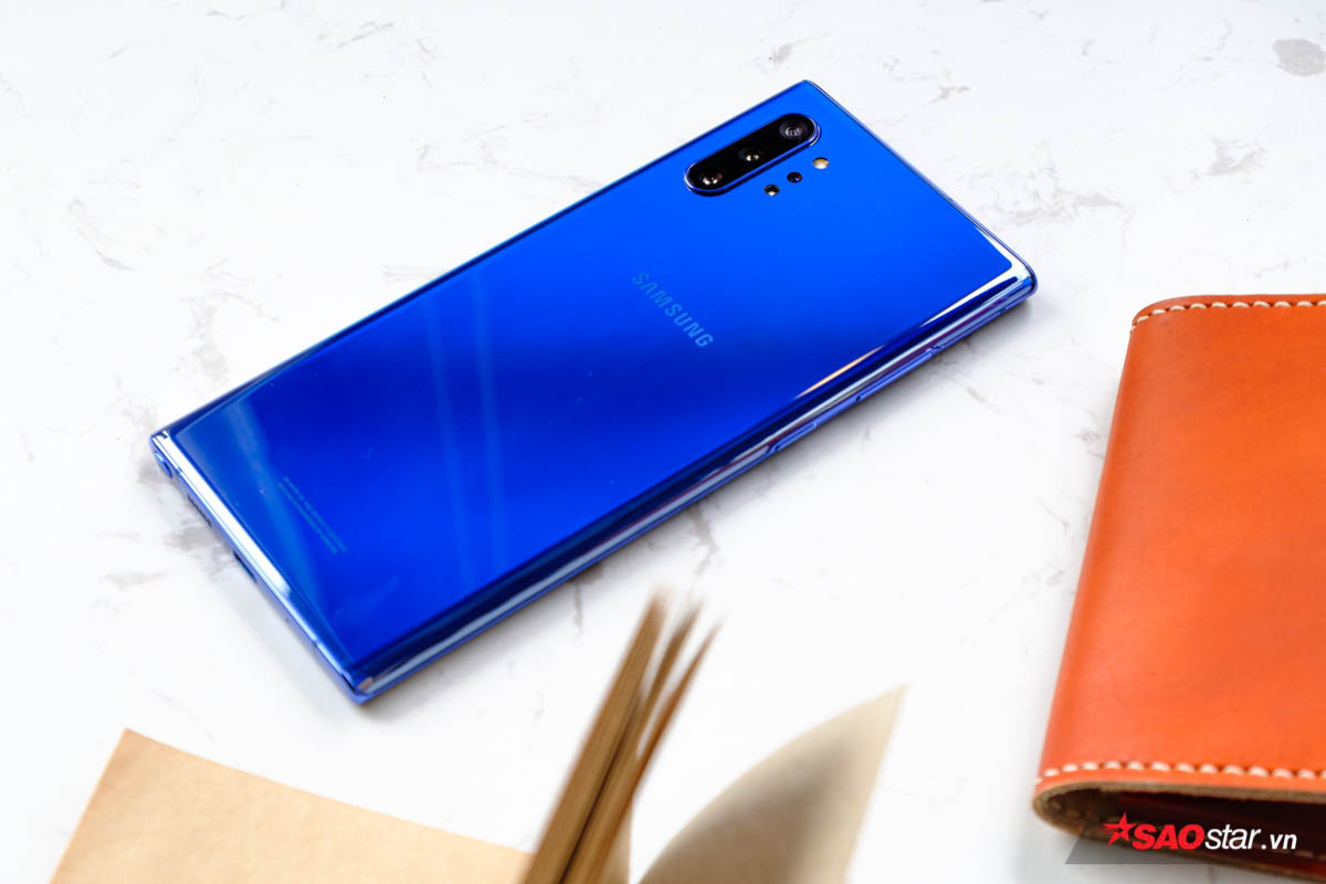 Sắc độ đậm nhạt của màu Xanh Aura trên Note10 sẽ phụ thuộc vào góc nhìn và cường độ ánh sáng môi trường chung quanh. Càng dưới ánh sáng mạnh, màu sắc trên phiên bản Note10+ càng rực rỡ, dễ thu hút ánh nhìn của người khác. Có lẽ đây là một cách khoe đầy tinh tế mỗi khi bạn rút mẫu “cạ cứng” cao cấp của mình ra khỏi túi. Tất nhiên vì là mặt lưng bằng kính nên sẽ bám bẩn một chút, bạn nên thường xuyên lau chùi bằng vải sạch hoặc dùng loại ốp lưng trong suốt để máy luôn trông đẹp nhất.