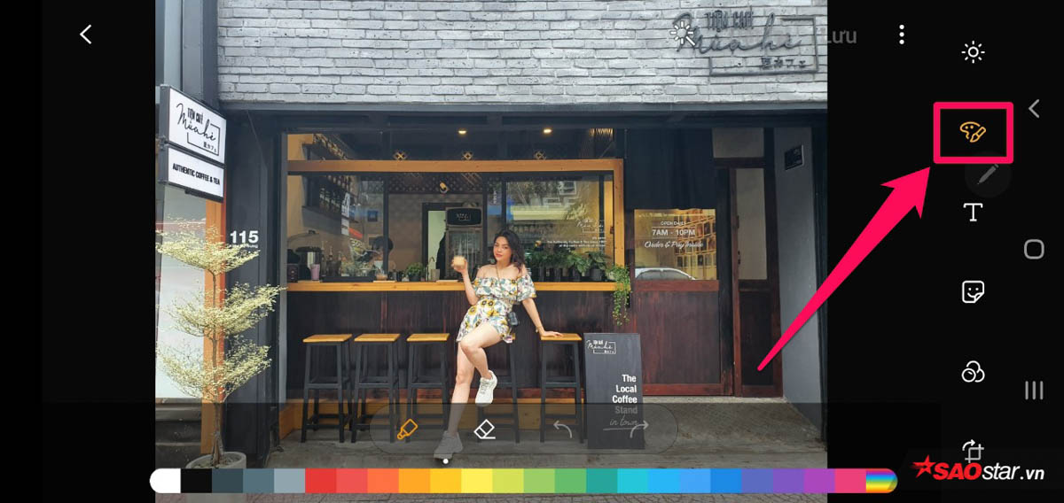Để thêm phần độc lạ cho bức ảnh của mình trước khi chia sẻ lên mạng xã hội, hẳn bạn sẽ muốn thêm chút dấu ấn cá nhân vào tác phẩm. Chính yếu tố này càng làm cho chiếc Galaxy Note10+ thêm “chất” với sự hỗ trợ của bút S Pen. Bạn có thể dễ dàng thêm thắt các sticker vui vẻ, đặc biệt vẽ vời hoặc những câu “deep deep” một chút bằng cách vào trình xem ảnh, chọn biểu tượng Vẽ.