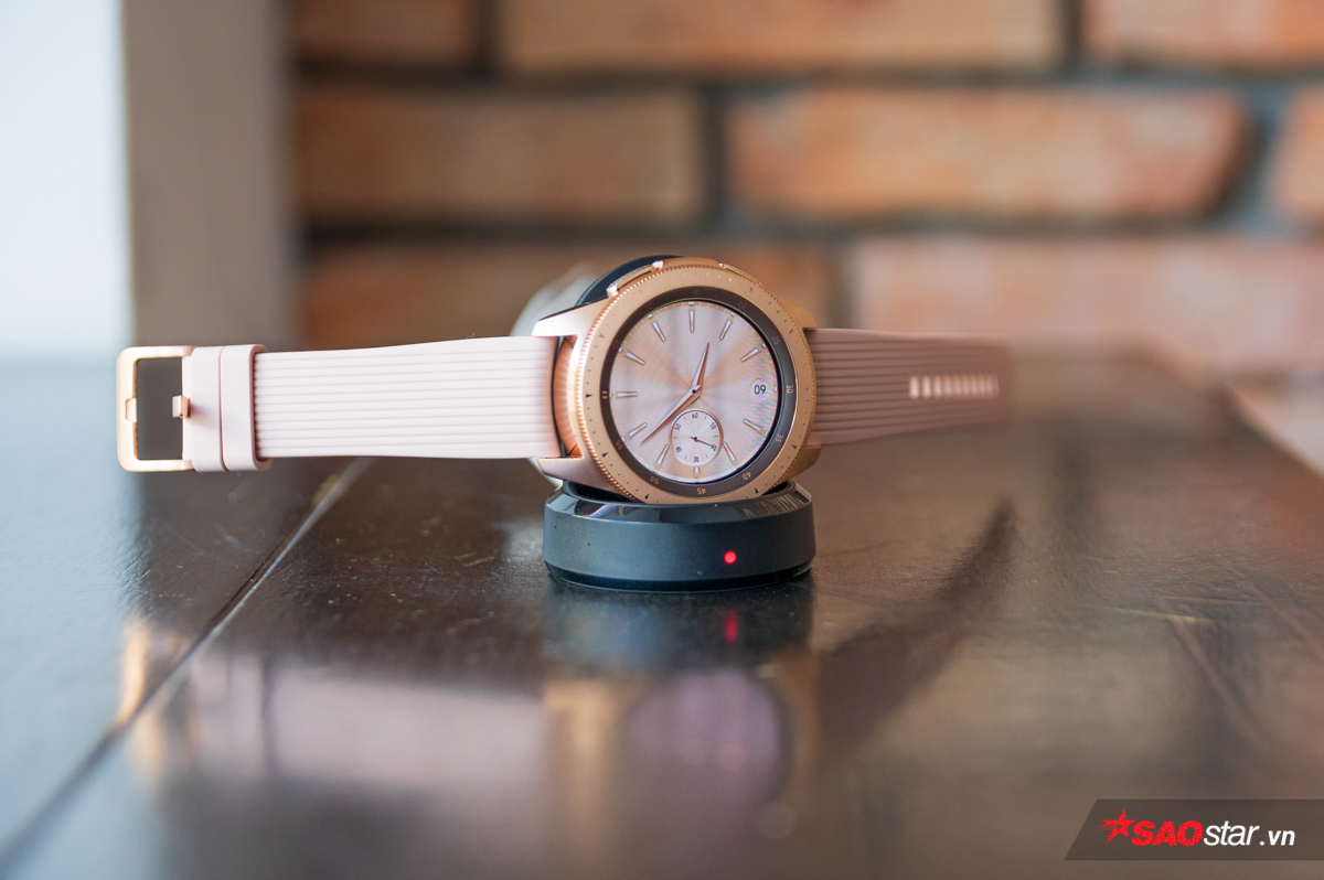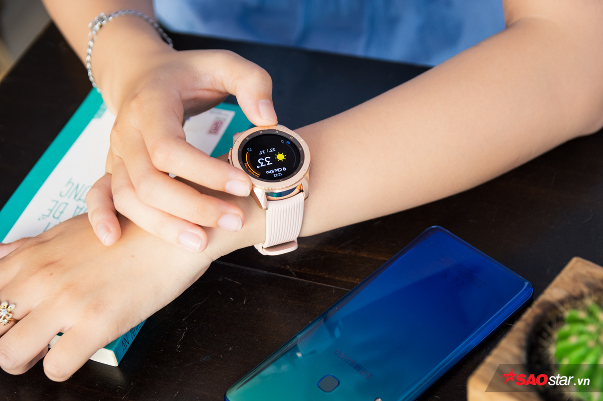 Galaxy Watch màu vàng ánh hồng cộng thêm thiết kế mặt tròn tinh tế đã tạo nên chiếc đồng hồ thông minh “thửa riêng” cho phái đẹp