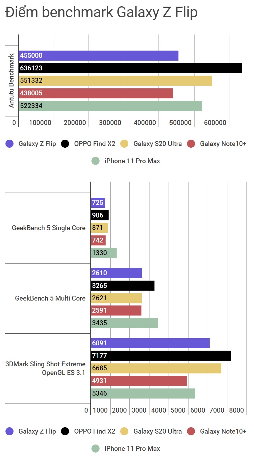 Ở mức giá không hề rẻ, 36 triệu đồng thì chúng ta đã quen với hình ảnh mẫu flagship được trang bị cấu hình “tận răng” những gì mới và mạnh mẽ nhất. Với Galaxy Z Flip thì không vậy khi em nó chỉ dùng cấu hình của flagship năm ngoái với vi xử lý Snapdragon 855+, 8 GB RAM và 256 GB bộ nhớ trong. Tất nhiên mẫu smartphone cao cấp này không hề yếu nếu không muốn nói là dư dả đối với mọi tác vụ từ cơ bản đến chơi các tựa game nặng.