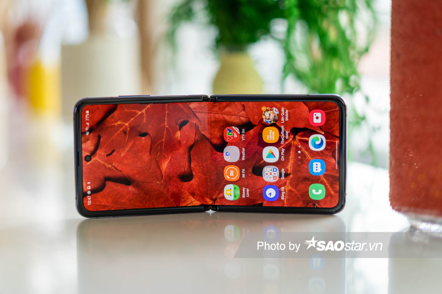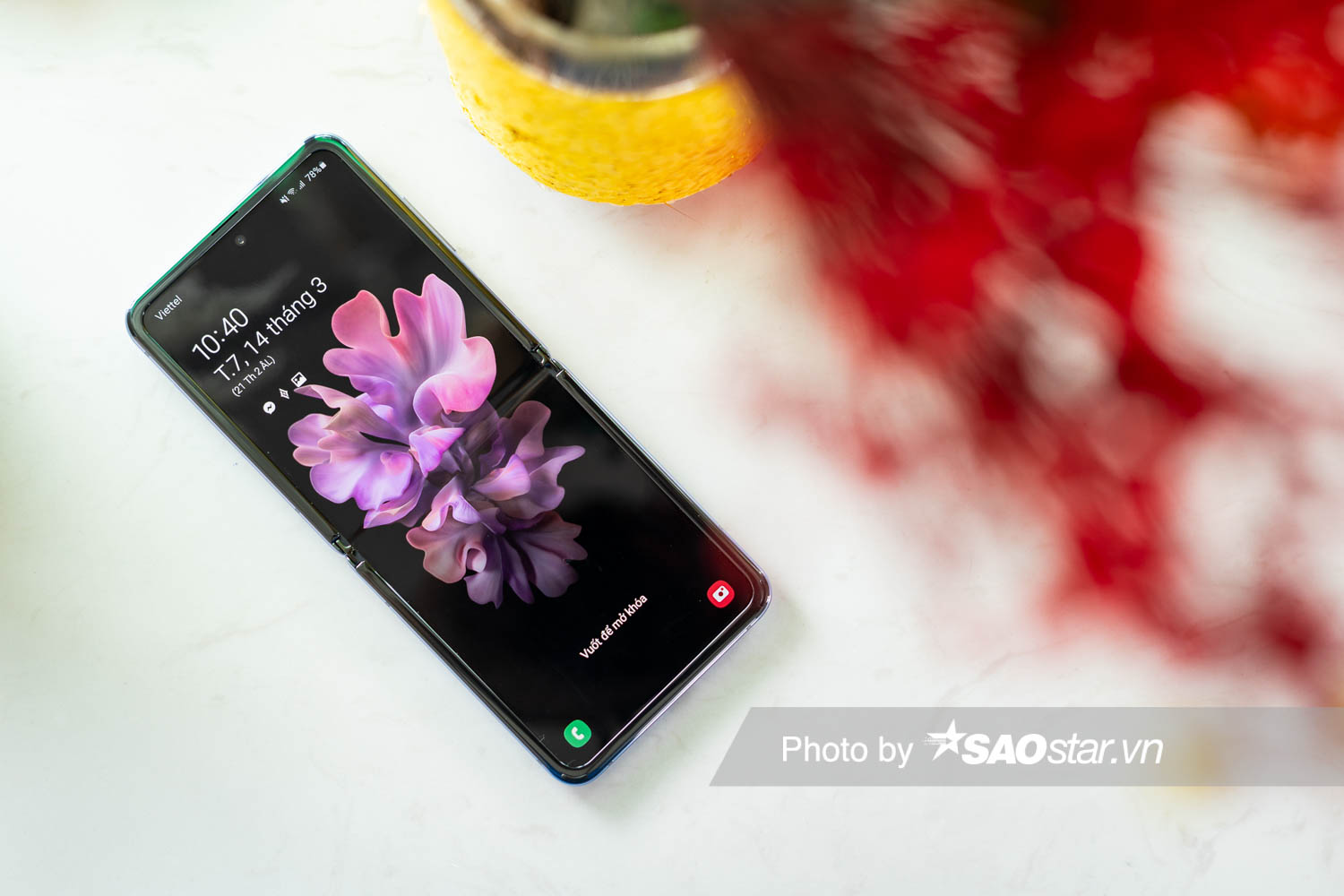 Khả năng hiển thị của Samsung Galaxy Z Flip ở mức làm tròn vai. Bạn sẽ có mẫu điện thoại với màn hình tỷ lệ dài, gần với tỷ lệ vàng của phim ảnh là 21:9, lý tưởng để thưởng thức nội dung giải trí. Màu sắc hiển thị cũng không có gì phàn nàn nhờ tấm nền màn hình AMOLED. Tuy vậy màn hình gập mới chỉ giai đoạn đầu phát triển, không thể so sánh với màn hình phẳng trên các flagship hiện nay về độ nổi khối, độ sáng, góc nhìn rộng hay tần số quét 120 Hz.