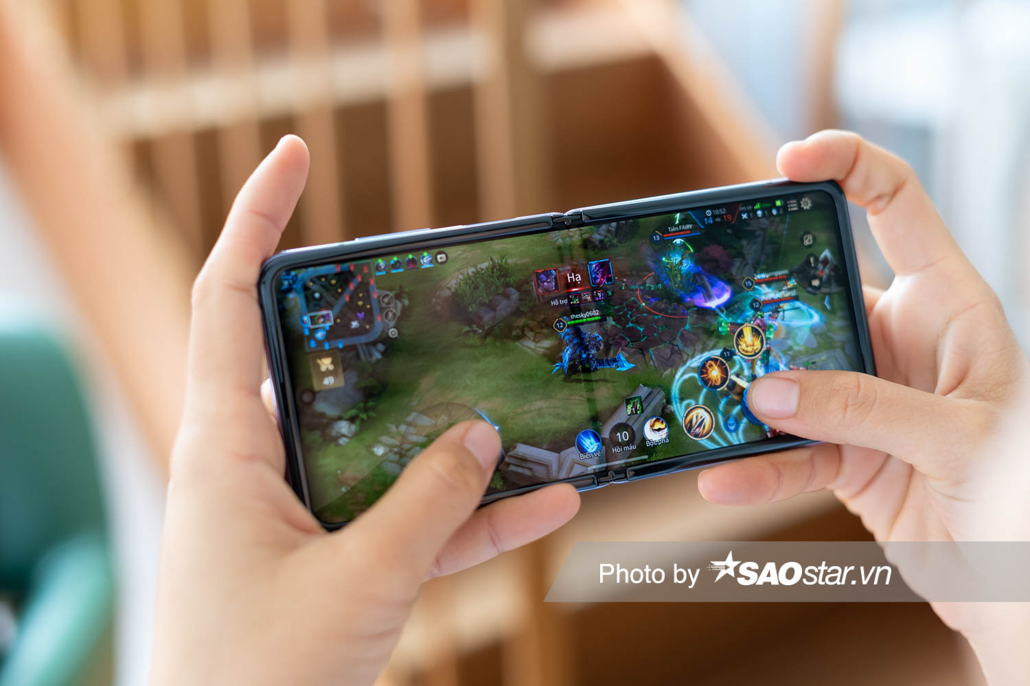 Thử sức với các tựa game phổ biến hiện nay như Liên Quân Mobile, bật max tùy chọn đồ họa vẫn không đủ làm khó Galaxy Z Flip khi máy vẫn bon bon ổn định ở mức 60 fps suốt quá trình chơi. Khả năng tản nhiệt của máy khá tốt khi dù tải nặng lâu nhưng không hề có hiện tượng nóng gây khó chịu.