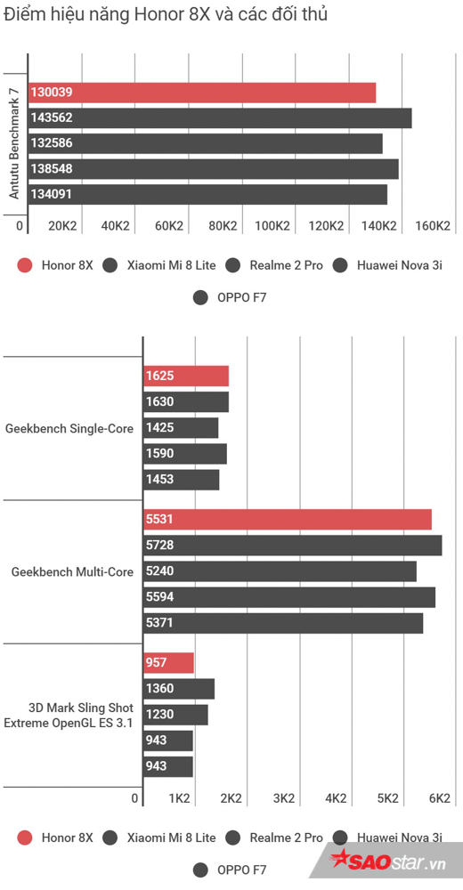Thử so sánh với các đối thủ cùng phân khúc, Honor 8X tỏ ra vượt trội khi chứng tỏ mình là smartphone tầm 6 triệu có thời lượng pin ấn tượng bậc nhất hiện nay.