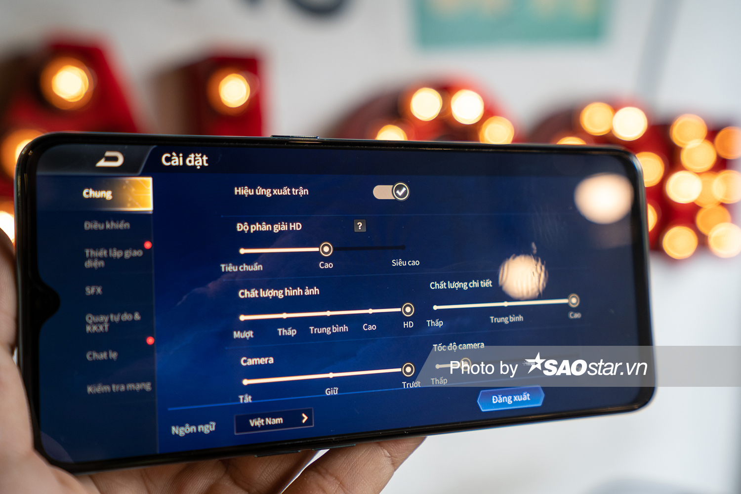 Thử sức với tác vụ nặng nề hơn như chơi game, với cái tên quốc dân như Liên Quân Mobile máy thể hiện mức hiệu năng tốt. Khá ngạc nhiên là dù chỉ dùng vi xử lý tầm trung của MediaTek nhưng OPPO A91 vẫn có thể bật được tùy chọn chất lượng hình ảnh HD trong khi những con chip đầu 7 từ Qualcomm chỉ dừng ở mức Cao mà thôi. Có thể đây là vi xử lý mới nên nhà phát hành game chưa tối ưu hóa.