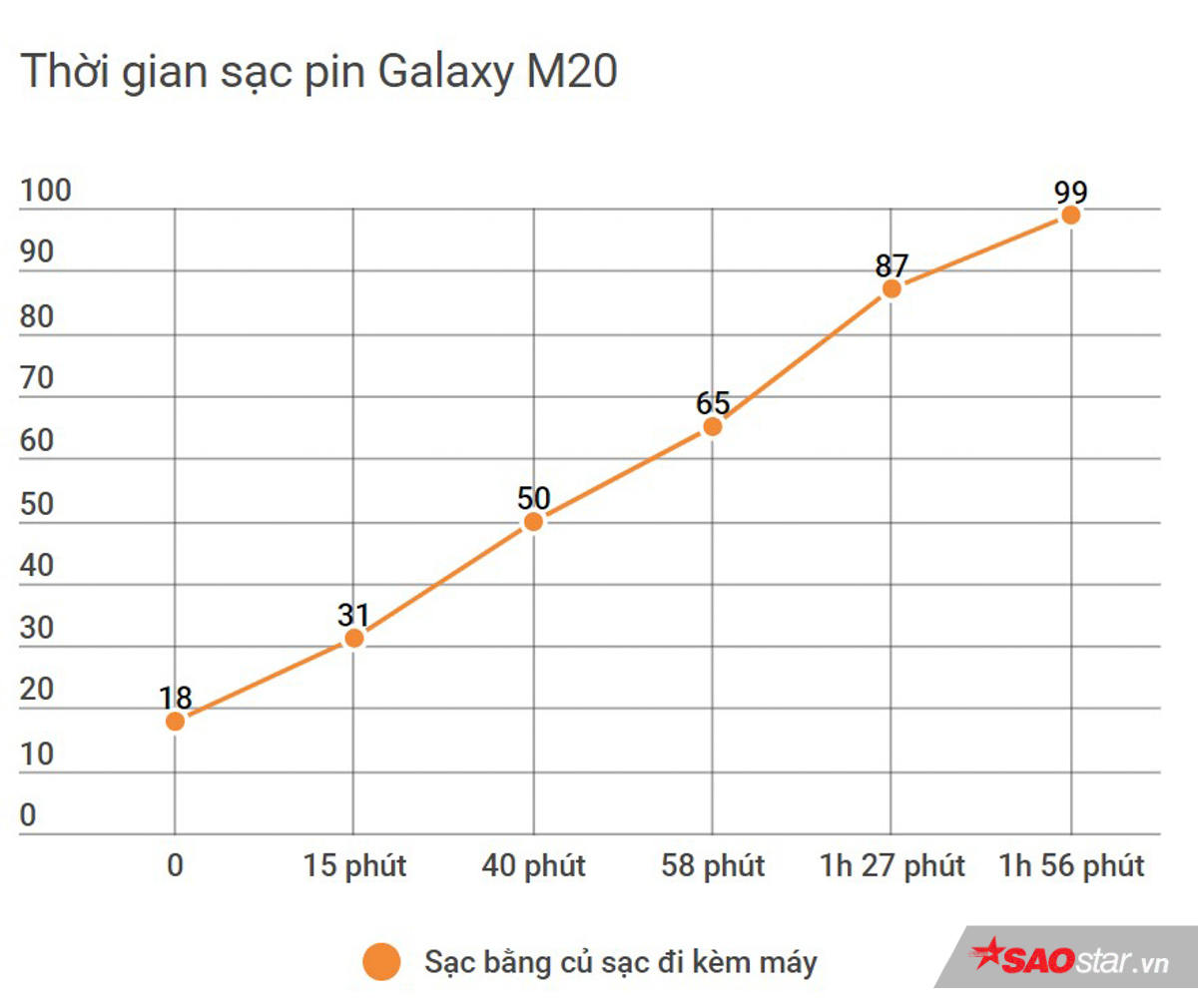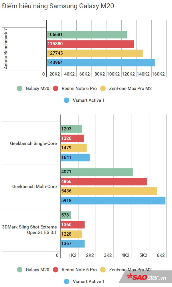 Qua biểu đồ trên cho thấy đại diện từ Samsung có thể chiến liên tục gần chục giờ trong các tác vụ như chơi game, xem phim. Lợi thế về màn hình lớn, pin lâu thì việc “đến trái đất” của Galaxy M20 nhằm phục vụ tín đồ yêu thích thế giới ảo, luôn muốn kè kè điện thoại như hình với bóng rồi.