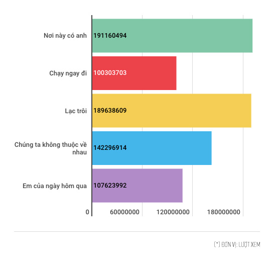 5 MV đạt trên 100 triệu lượt xem trên YouTube của Sơn Tùng.