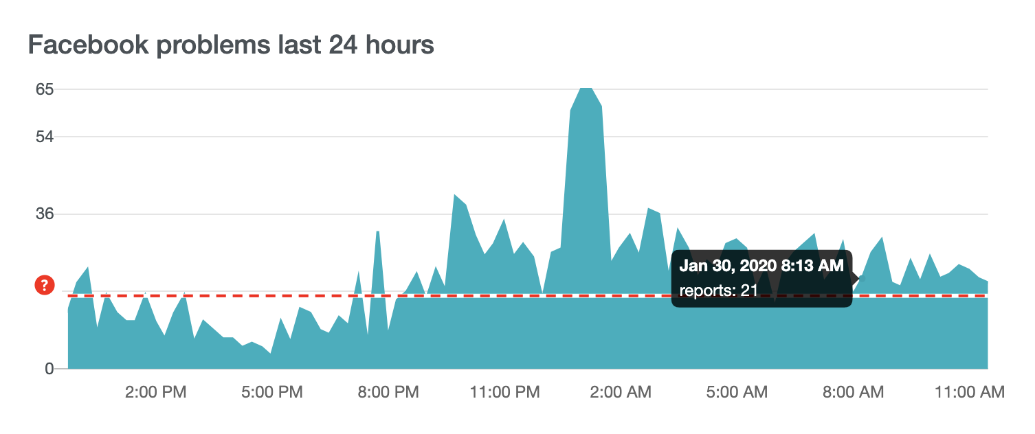 Trên Downdetector, chuyên trang theo dõi tính ổn định của các mạng xã hội, lượng người dùng báo gặp lỗi tăng liên tục ở thời điểm 18h hôm qua cho đến sáng hôm nay.