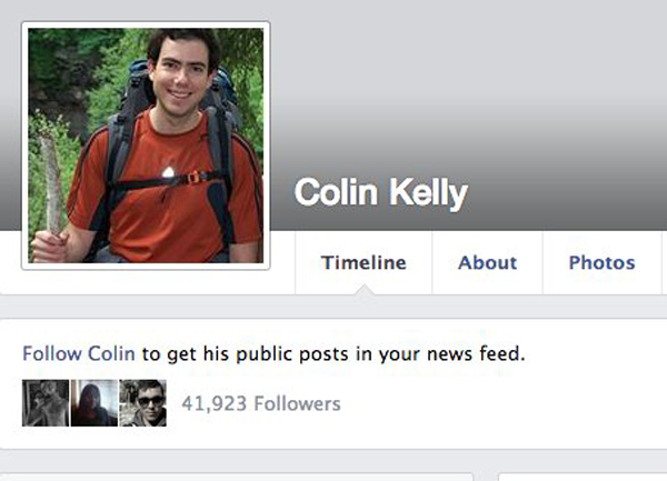 Colin Kelly hiện được cho là một luật sư và dường như anh không có một mối liên hệ sớm rõ ràng vào với Facebook. Dù vậy, Colin Kelly vẫn may mắn sở hữu một trong 10 tài khoản đầu tiên trên Facebook.