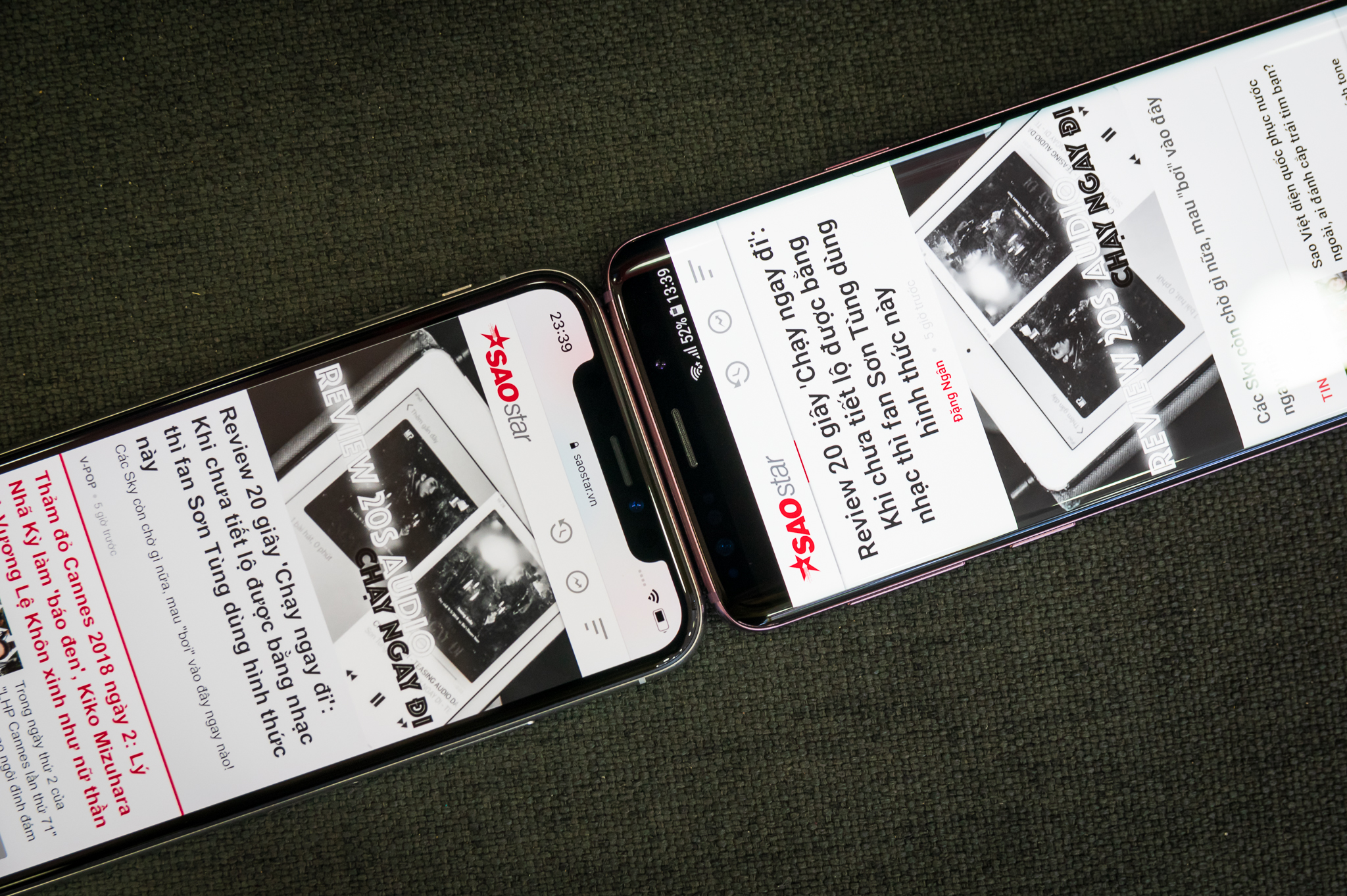 Khả năng hiển thị trên cả Galaxy S9/S9+ và iPhone X không có gì để chê nếu không muốn nói chúng là một trong những smartphone có màn hình đẹp nhất hiện nay. Nhưng nếu khắt khe hơn, hẳn bộ đôi đến từ Samsung sẽ chiếm ưu thế. Đầu tiên nhờ độ phân giải màn hình cao hơn (1.440 x 2.960 pixel so với 1.125 x 2.436 pixel) nên hình ảnh hiển thị trên S9/S9+ mịn màng, sắc nét hơn.