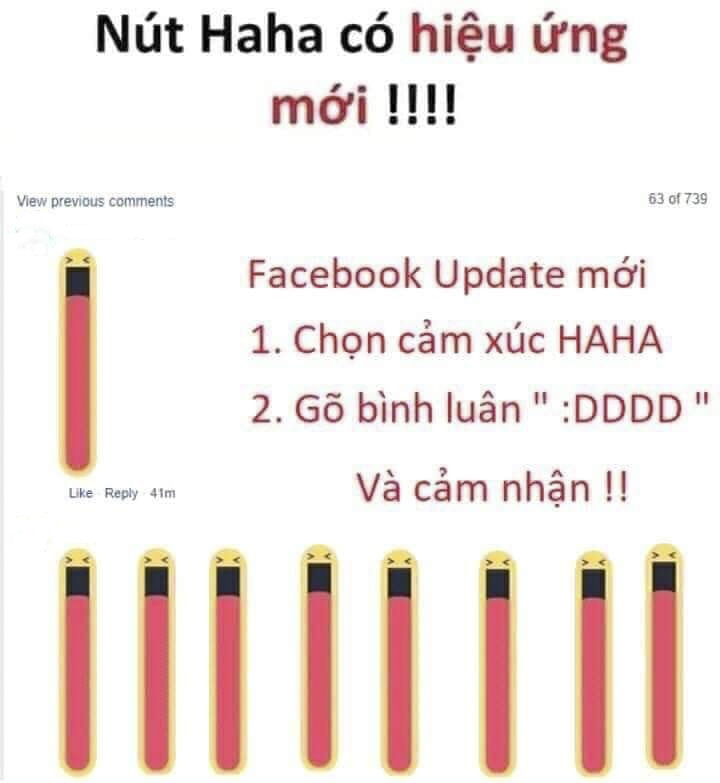 Trong những ngày qua, cộng đồng Facebook Việt Nam liên tục bắt gặp những bình luận biểu tượng cảm xúc “haha” bị kéo dài. Rất nhiều người cảm thấy vô cùng thích thú với biểu tượng icon kỳ lạ này, nhưng không biết cách nào để có thể đăng khuôn mặt hài hước ấy vào bình luận.