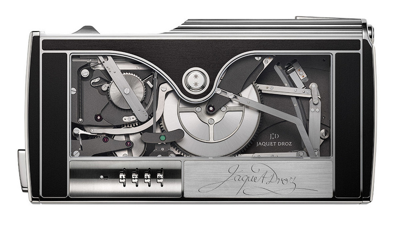Bên cạnh đó, để đề phòng trường hợp người khác có ý định sử dụng thiết bị, Jacquet Droz đã trang bị hệ thống bảo mật gồm 4 số ở phần mặt trên của máy.