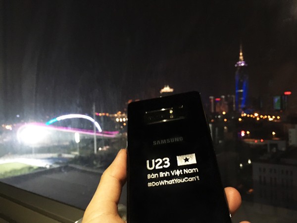 Điều đáng nói là những chiếc Samsung Galaxy Note8 dành tặng đội tuyển U23 Việt Nam là những chiếc máy đặc biệt với mặt lưng được in số áo kèm tên các cầu thủ cùng thông điệp #DoWhatYouCan’t (“Kiến Tạo Điều Không Thể”) như một lời động viên gửi gắm đến các cầu thủ trẻ.