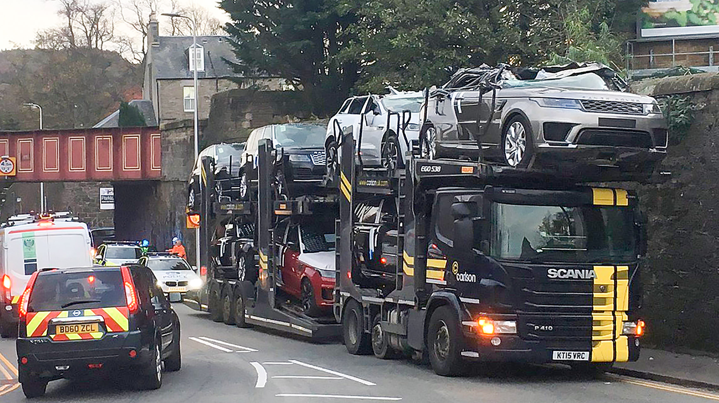 Cú va chạm này đã khiến hàng loạt xe sang như Range Rover, Jaguar,… bị mất nóc và bỗng biến thành… xe mui trần . Tại Scotland, giá khởi điểm cho một chiếc Range Rover Sport mới là 65.000 bảng (khoảng 2 tỷ đồng), còn Jaguar là 30.000 bảng (khoảng 900 triệu đồng). Do đó, có thể khẳng định rằng, đây là một ngày cực kỳ tồi tệ với anh chàng cầm lái chiếc xe chuyên dụng.