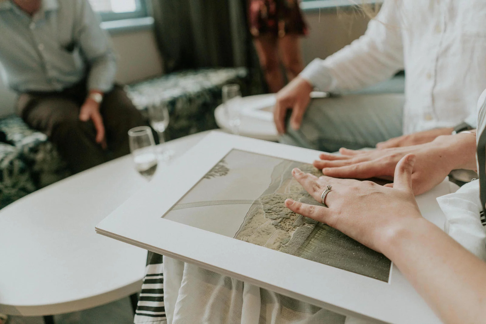 Lemon Tree Film House cũng đưa ra ý tưởng, cho Steph mang theo bên mình 10 mảnh khăn thêu với mỗi mảnh được tẩm một loại tinh dầu khác nhau. Bằng cách đặt tay lên cảm nhận và ngửi mùi của nó, Steph sẽ ngay lập tức chìm vào những thời khắc quan trọng trong tiệc cưới của mình.