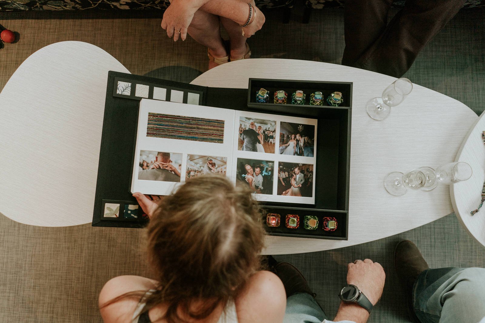 Đội ngũ của của Lemon Tree Film House cũng đã khéo léo đặt vào album đặc biệt này 10 chiếc khăn thêu cùng 10 lọ tinh dầu đã được sử dụng trong ngày cưới của cặp đôi, giúp họ thể cảm nhận trọn vẹn những khoảnh khắc yêu thương khi cùng xem lại ảnh cưới.