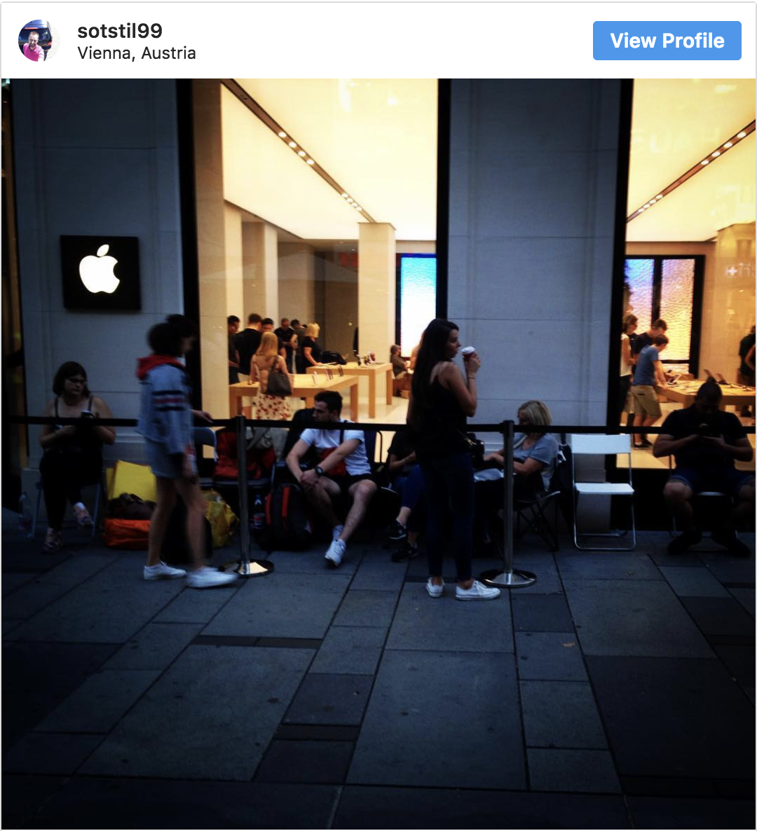 Trong khi đó, khung cảnh xếp hàng mua iPhone mới tại Áo có vẻ ít đông đúc hơn, một phần cũng do chưa tới giờ bán ra.