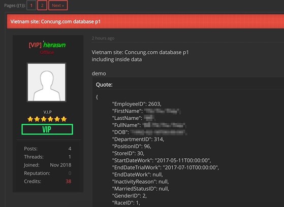 Bên cạnh đó, hacker này cũng tuyên bố mình đang có trong tay dữ liệu của FPT Shop và chỉ giao dịch khi được giá. Hiện, cả 2 hệ thống bán lẻ này vẫn chưa đưa ra bất kỳ bình luận nào về vụ việc. Chúng tôi sẽ tiếp tục cập nhật thông tin.