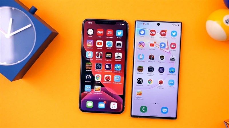 iPhone 11 Pro Max là đại diện cho iOS còn Samsung Galaxy Note10+ là đại diện cho Android trong cuộc đua smartphone cao cấp xuất sắc nhất trong năm 2019. (Ảnh: YouTube)