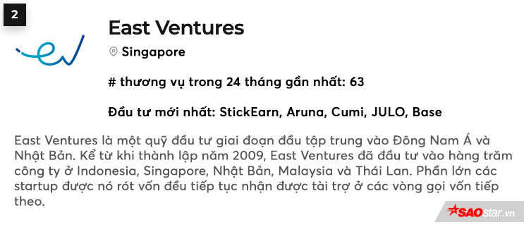 Đâu là nhà đầu tư năng động nhất Đông Nam Á? Sử dụng dữ liệu do chính mình tổng hợp, Tech In Asia đã đưa ra danh sách các nhà đầu tư “hào phóng” nhất đối với khu vực này. Thứ hạng các nhà đầu tư xuất hiện trong danh sách này được đưa ra dựa trên số lượng công ty và startup mà họ đã tham gia đầu tư.