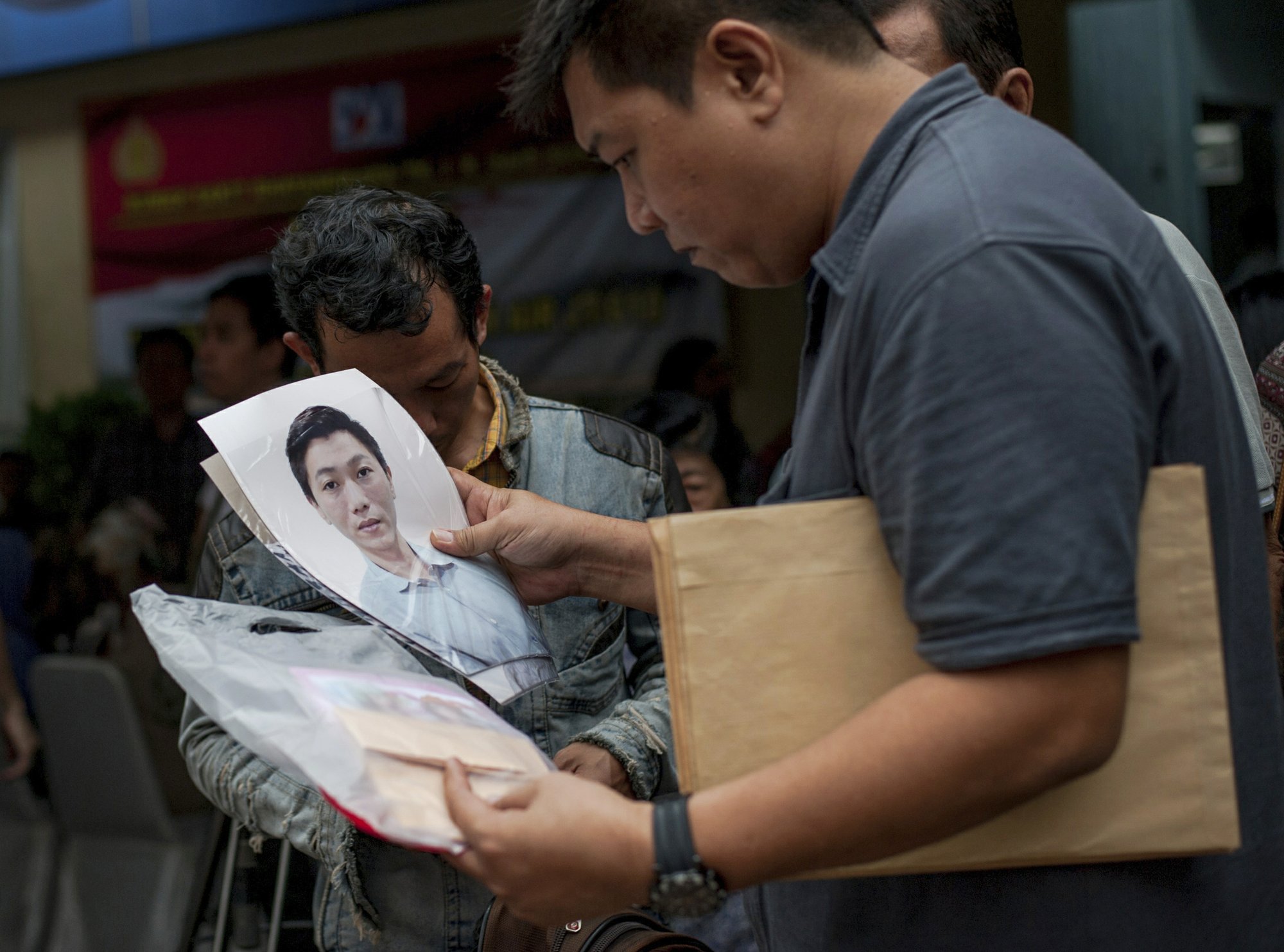 Người thân cầm ảnh của một hành khách có mặt trên chuyến bay xấu số của Lion Air.