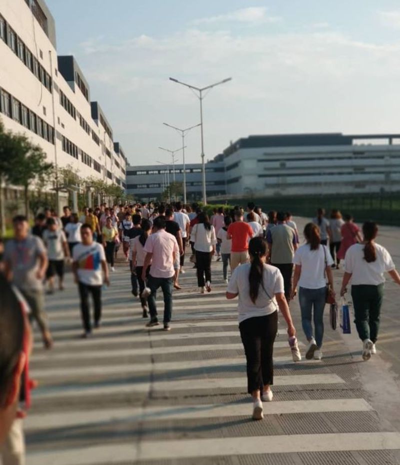 Nhân viên Foxconn trong ca làm buổi sáng. (Ảnh: CLW)