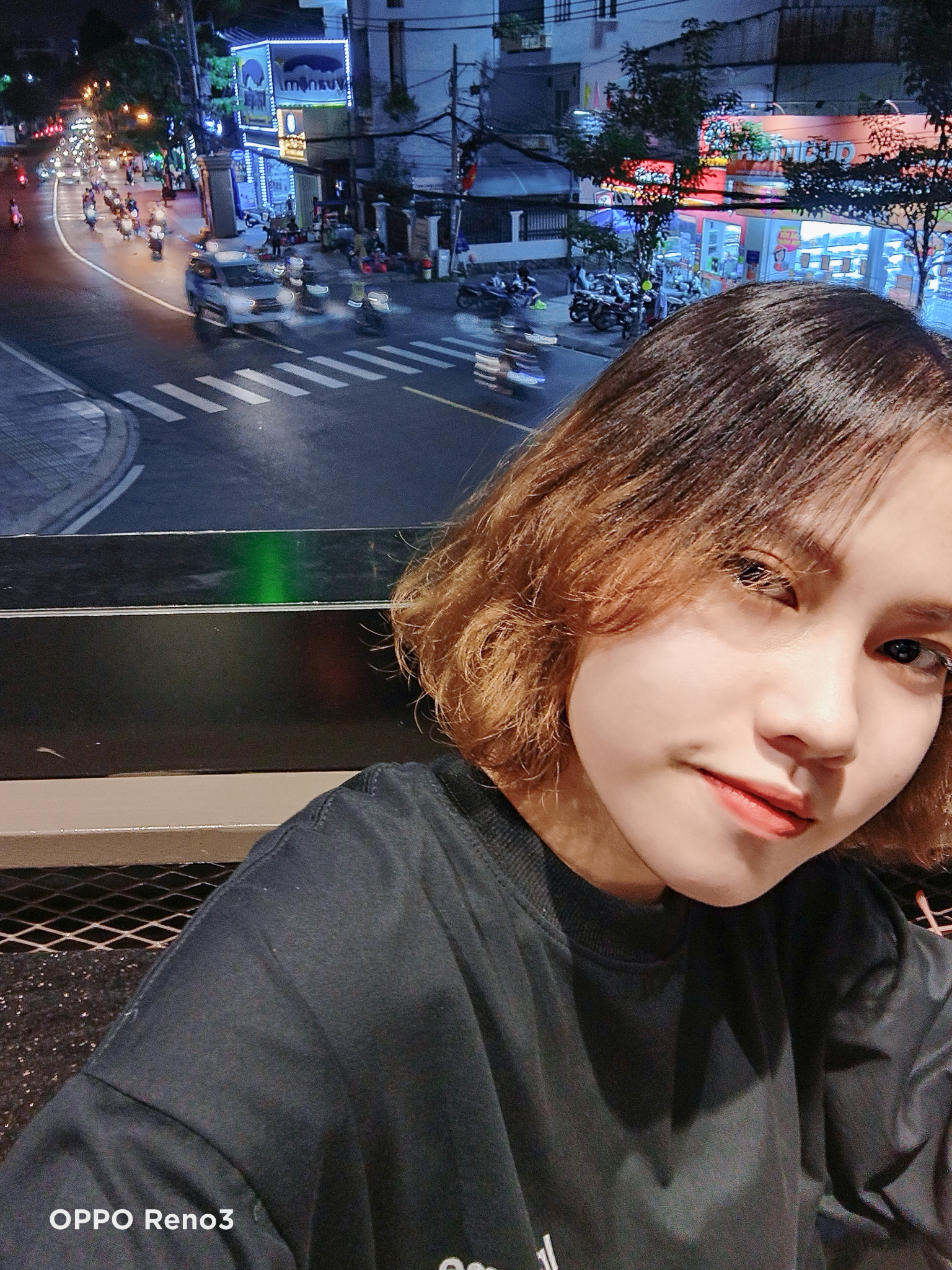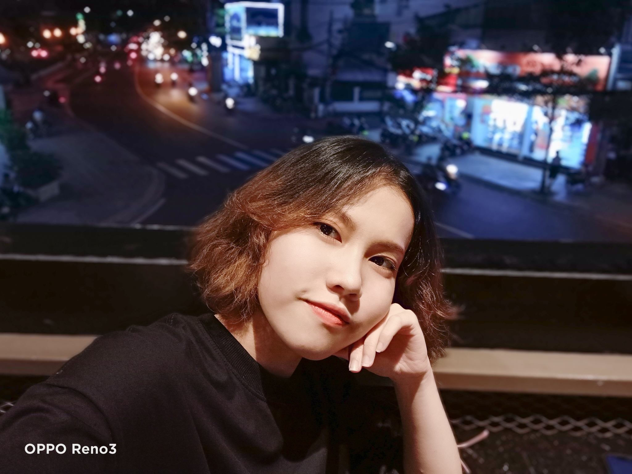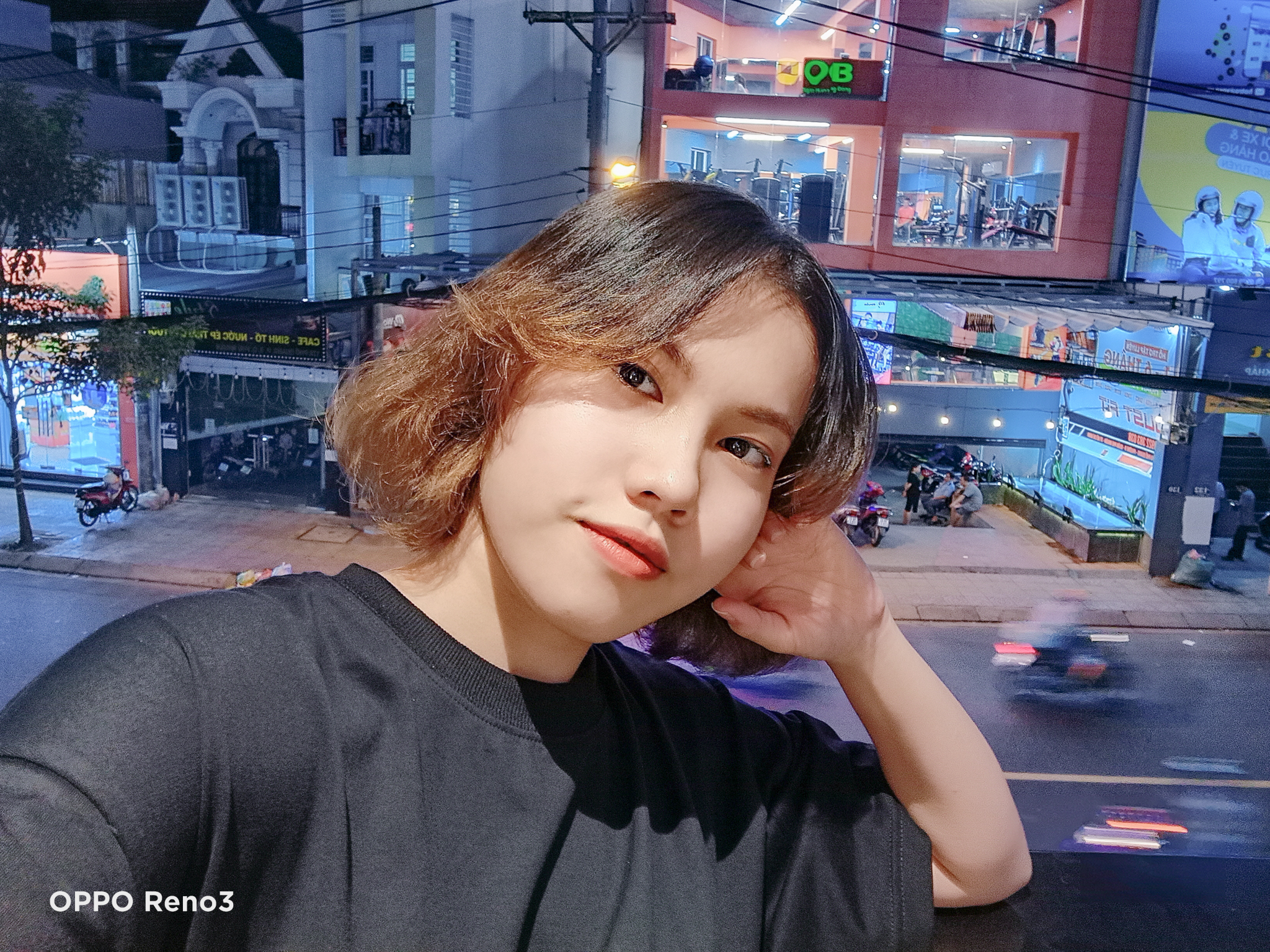 Thử thách khó nhằn hơn là selfie lấy cảnh đường phố tấp nập xung quanh, lúc này ánh sáng yếu hơn hẳn cũng là lúc để hai mẫu “cạ cứng” này phát huy hết công lực. Độ thật mà ứng dụng chụp ảnh mặc định của iPhone mang lại có thể không làm hài lòng hội chị em, thường người dùng phải cài thêm ứng dụng bên thứ ba để có được bức hình ảo diệu. Riêng trên OPPO Reno3, tính năng làm đẹp tích hợp sẵn giúp việc sở hữu được bức ảnh selfie chuẩn chỉnh dễ dàng và nhanh chóng hơn.
