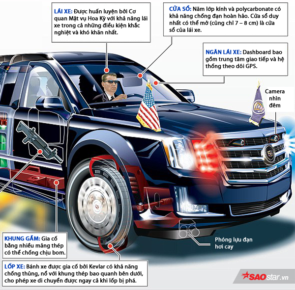 Chiếc limousine của Tổng thống Mỹ, còn được biết đến với tên gọi “The Beast”. Ông Obama bắt đầu sử dụng chiếc xe này từ năm 2009 và giờ nó là phương tiện chuyên chở ông Donald Trump.