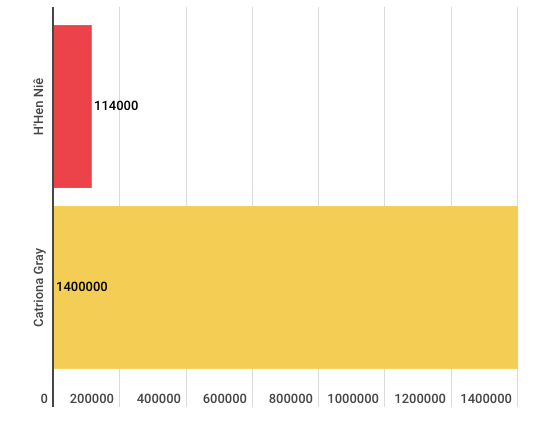 Trên Facebook, fanpage chính thức được gắn dấu xanh xác thực của H’Hen Niê cho thấy cô đang được 222,014 người nhấn like. Trong khi đó, con số này của đại diện đến từ Philippines ấn tượng hơn khá nhiều. Catriona Gray đang có 720,953 người nhấn thích trên Facebook.