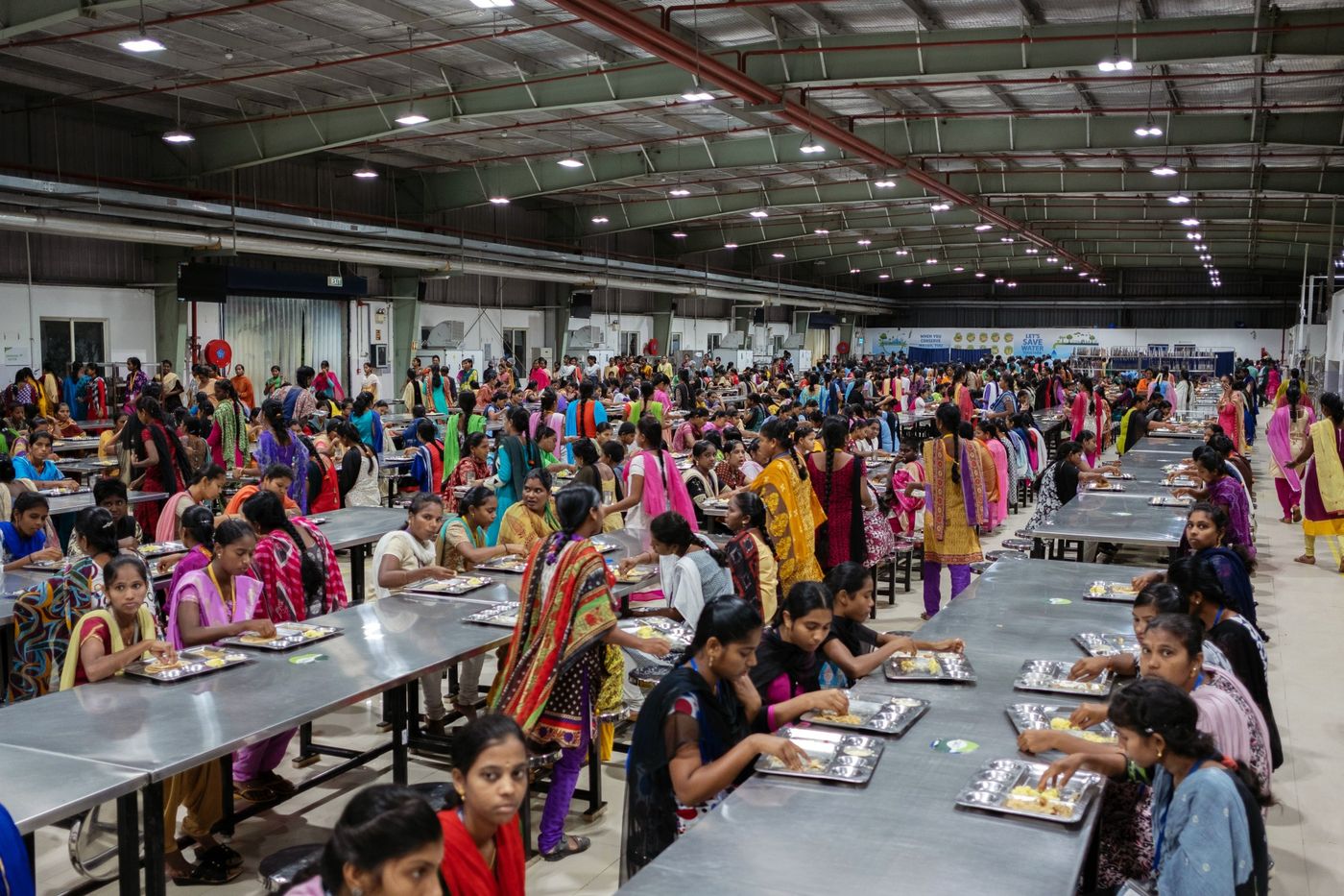 Công nhân ăn sáng ở canteen nhà máy trước khi bắt đầu ca làm việc. (Ảnh: Karen Dias/Bloomberg)
