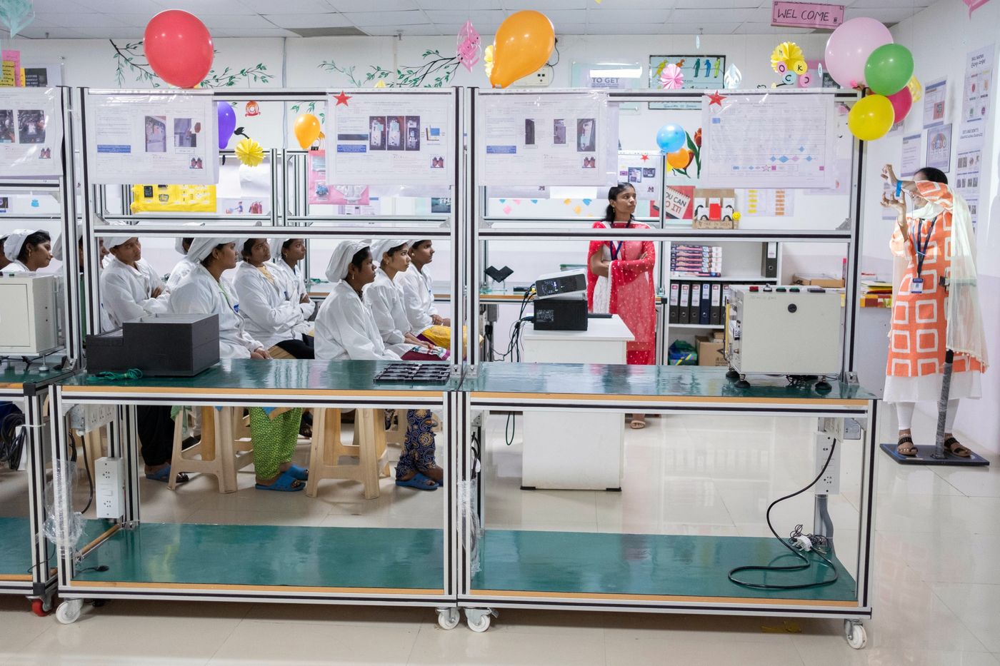 Công nhân nữ đang được đào tạo. (Ảnh: Karen Dias/Bloomberg)