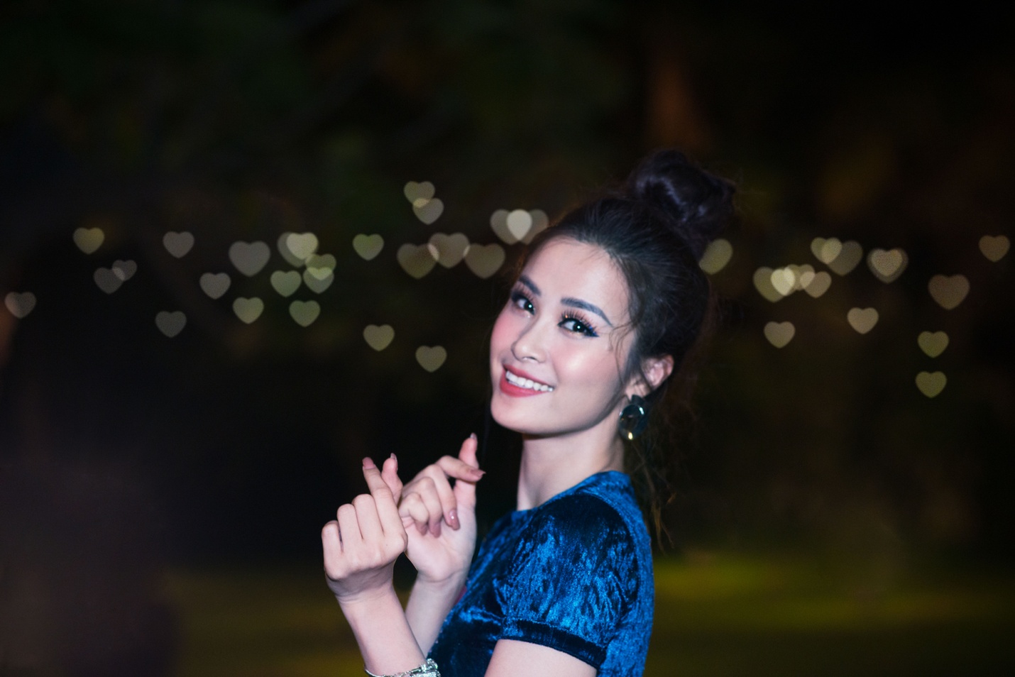 Bức ảnh chụp buổi tối bằng Galaxy A6+, nhưng không thể rạng rỡ hơn khi Đông Nhi cười tươi hết cỡ, thần thái rạng rỡ, khoe làn da mịn màng không tì vết. Vẫn là “khuôn trăng, nét ngài” và đôi mắt biết cười ấy, nhưng qua hiệu ứng xóa phông nghệ thuật Art Bokeh, mọi đường nét chuẩn mực và xinh đẹp nhất được phô bày dưới trời đêm.