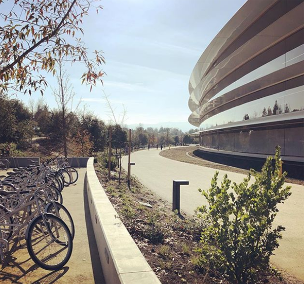 Nhân viên Apple có thể dùng những chiếc xe đạp màu xám để di chuyển quanh trụ sở chính.