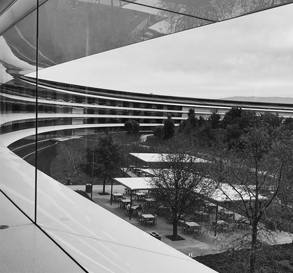 Khung cảnh nhìn từ tầng 4 Apple Park chụp bởi một thành viên nhóm thiết kế của Apple.