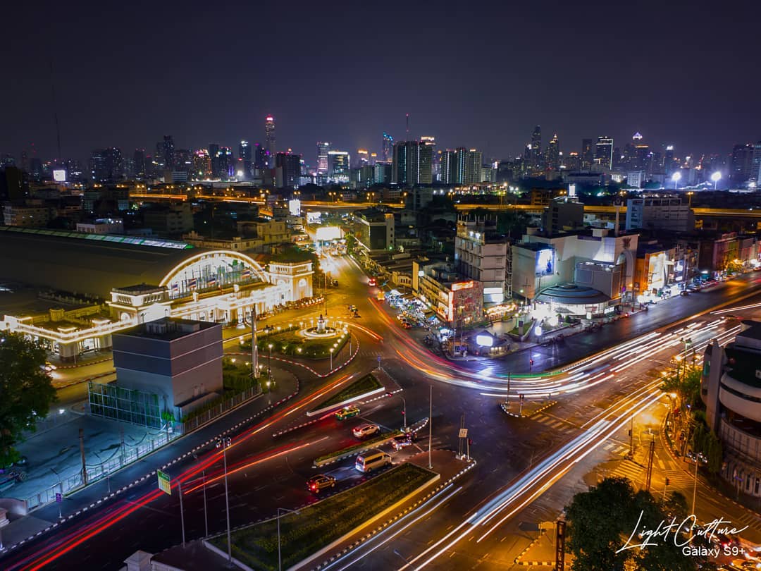 Dù góc chụp trên cao và từ xa, Galaxy S9+ vẫn bắt rõ nét từng đường ánh sáng của đèn xe khi di chuyển như một bức tranh đô thị về đêm sống động muôn màu.
