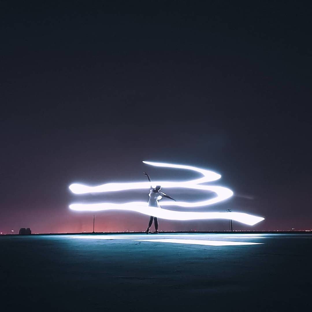 Chẳng cần phải chờ trời tối để chụp ảnh Light Graffiti, bạn vẫn có thể chụp những bức ảnh thế này với khẩu độ f/2.4 trên Galaxy S9 để tạo ra những bức ảnh phơi sáng rõ nét, sống động như đồ họa “người bạn ánh sáng” trong hình.