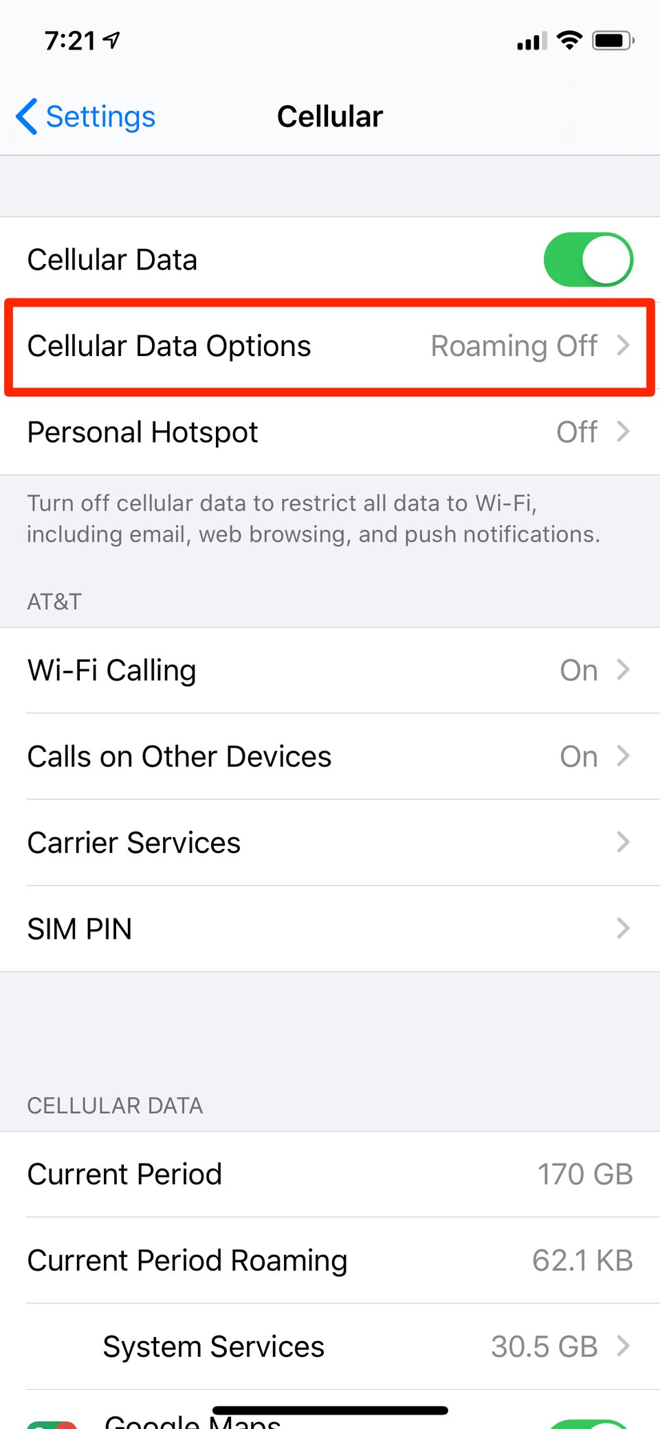 3. Chọn “Cellular Data Options”