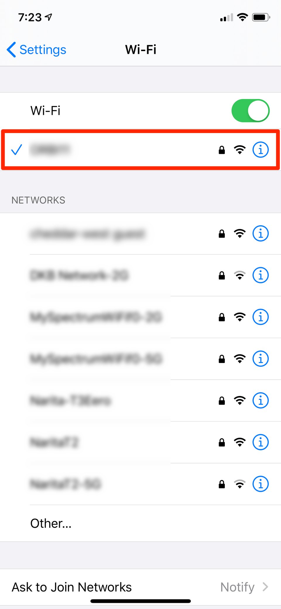 3. Hãy đảm bảo rằng bạn đã kết nối tới mạng Wi-Fi mà mình muốn áp dụng chế độ “Low Data Mode”.