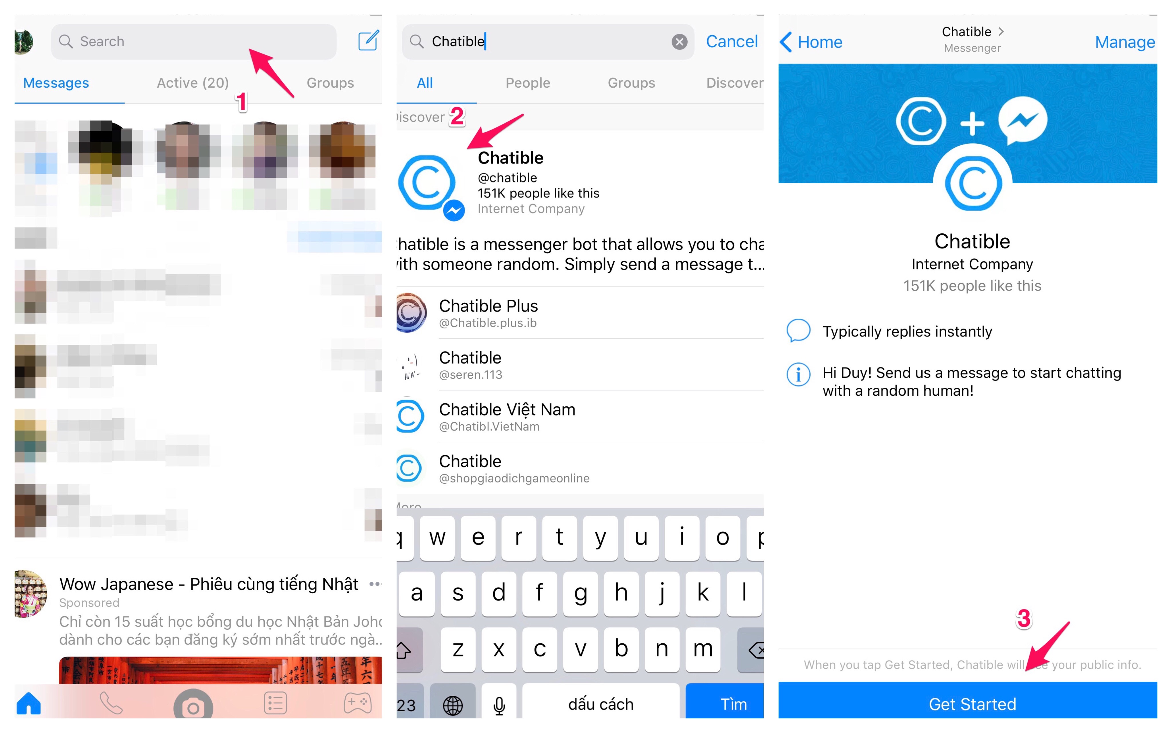 Khi muốn trò chuyện cùng người lạ, bạn chỉ cần truy cập vào trang web chatible.io và không cần cài đặt bất kỳ phần mềm nào. Bạn có thể sử dụng bằng cả trình duyệt web, lẫn ứng dụng Messenger trên di động.