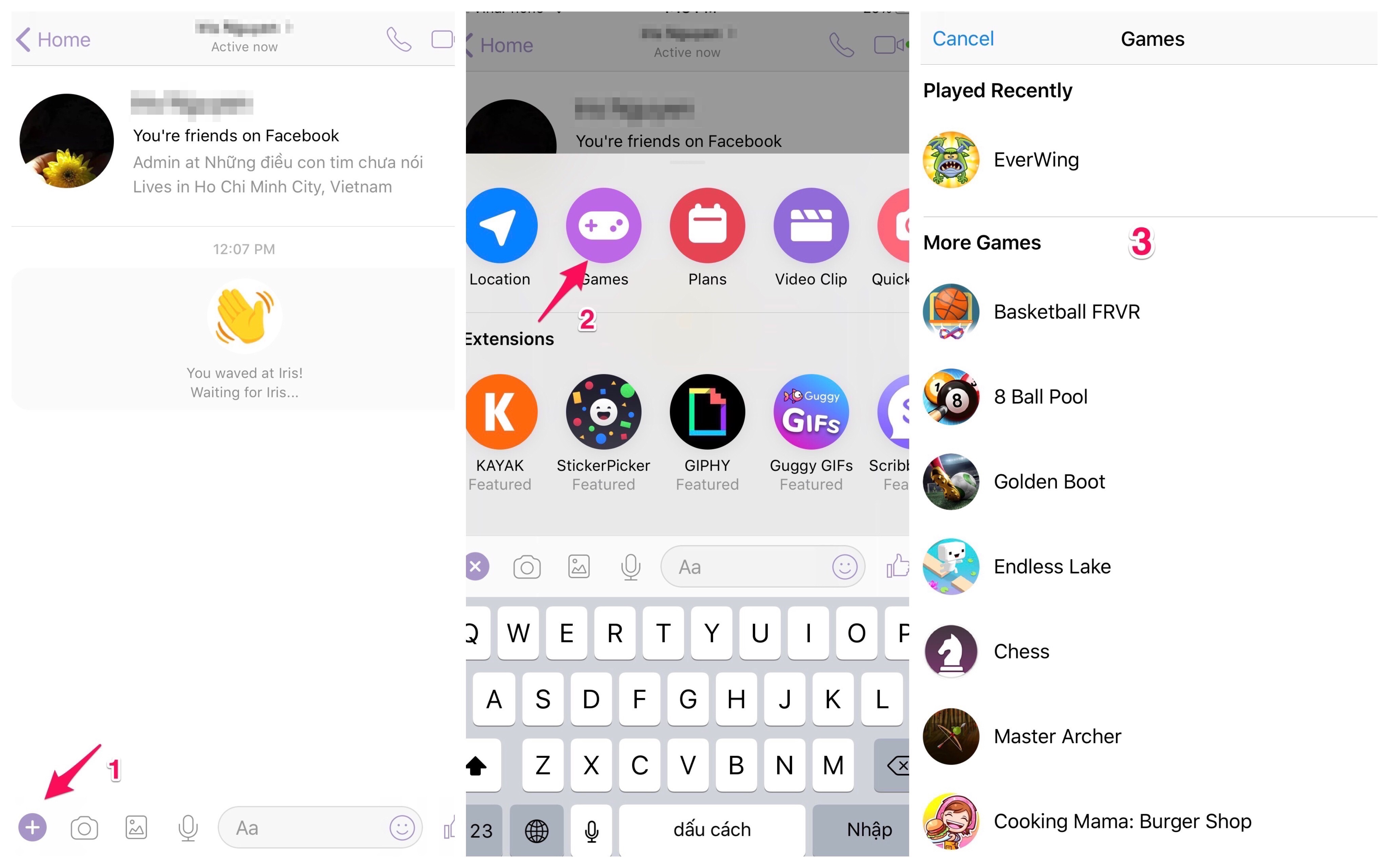 Facebook có một loạt trò chơi từ kinh điển cho đến hiện đại như Pac-Man, Templar 2048, EverWing,.. Người dùng chỉ cần truy cập ứng dụng Messenger và chơi những trò chơi mà mình thích mà không cần cài đặt. Không những thế, người dùng còn có thể chia sẻ, gửi lời mời chơi cùng hoặc gửi lời thách đấu cho những người bạn hay gia đình của mình.