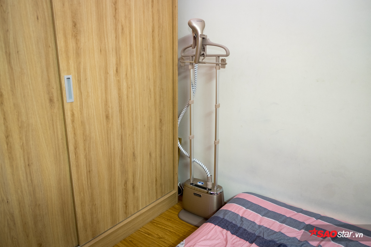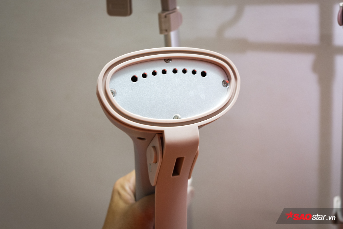 Phần giá treo của chiếc bàn là đứng này có thể điều chỉnh cao, thấp sao cho phù hợp với mục đích sử dụng. Trải nghiệm cho thấy thanh đỡ của chiếc bàn ủi đứng này khá chắc chắn mặc dù có phần nhìn mảnh mai.