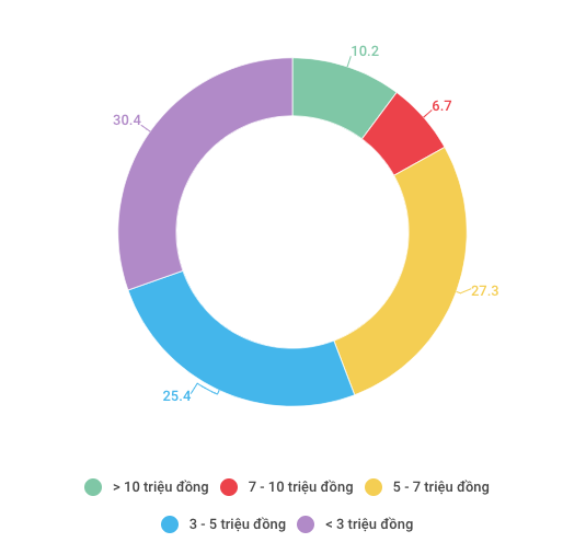 Phân khúc thị trường sôi động nhất bất ngờ thuộc về những chiếc smartphone trong tầm giá dưới 3 triệu đồng với miếng bánh thị phần lên tới 30,4%, theo sau là phân khúc smartphone 5 triệu đồng đến 7 triệu đồng (27,3%) và 3 triệu đồng đến 5 triệu đồng (25,4%). Phân khúc giá từ 7 triệu đồng đến 10 triệu đồng là phân khúc kén khách hàng nhất tại Việt Nam khi chỉ có thị phần dừng lại ở mốc 6,7%.