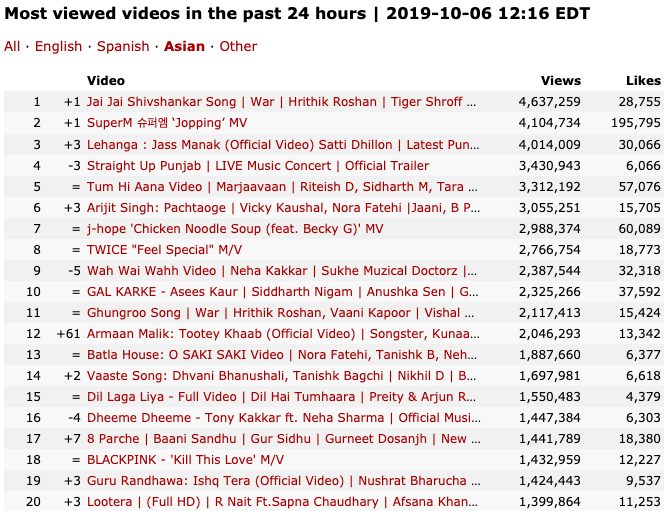 Bên cạnh đó, mặc dù tăng trưởng lượt xem cực kì ấn tượng, thế nhưng chuyên trang theo dõi các biến động trên YouTube từng được nhiều website tham chiếu là kworb.net cũng không hề ghi nhận thành tích của ‘Em gì ơi’. Trong bảng xếp hạng các video được xem nhiều nhất 24 giờ qua ở thời điểm thực hiện bài viết, video đứng đầu cũng chỉ tăng trưởng 4,6 triệu lượt xem, kém xa MV 'Em gì ơi' của Jack và K-ICM.