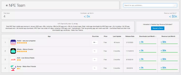 Hơn 7 tháng sau ngày thành lập, đội ngũ của Facebook đã ra mắt tổng cộng 4 ứng dụng song không có ứng dụng nào thu hút được số lượng người dùng đủ lớn, theo dữ liệu từ công ty phân tích dữ liệu ứng dụng Sensor Tower. Ba trong số các ứng dụng này, dù vậy, chỉ khả dụng ở Canada. Hobbi hiện tại đang có mặt tại 84 quốc gia, bao gồm Mỹ, Úc và Canada, cũng theo Sensor Tower. Nó được ra mắt vào hôm thứ 4 song với chỉ nhận được chưa đến 5.000 lượt tải về.