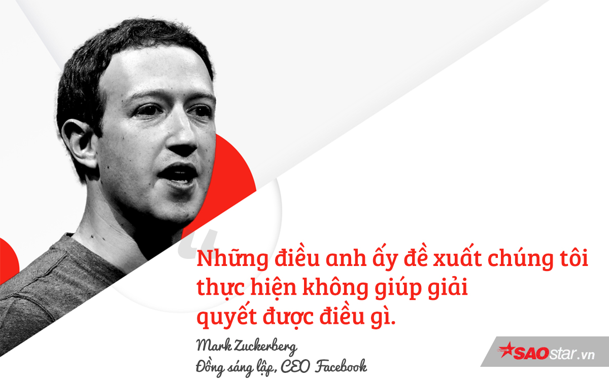 Theo CNBC, Mark Zuckerberg đã nhắc đến những chia sẻ của Chris Hughes trong một bài phỏng vấn với kênh truyền hình Pháp France 2. Facebook CEO theo đó khẳng định rằng “những gì anh ấy đề xuất chúng tôi thực hiện chẳng giúp giải quyết được vấn đề gì cả.”