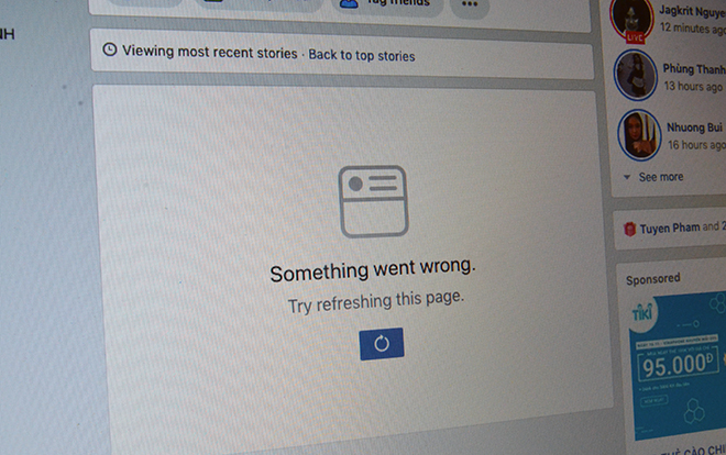 Trưa ngày 18/11, nhiều người dùng Facebook tại Việt Nam cho biết khi thực hiện truy cập Facebook, họ nhận được thông báo cho thấy News Feed đang gặp phải vấn đề và dòng tin tức không thể tải được thêm. Facebook đưa ra hướng dẫn người dùng thử refresh lại trang, tuy nhiên thực tế thì thao tác này cũng không có tác dụng. Một số người dùng lại chia sẻ họ cũng gặp phải vấn đề này tuy nhiên sau khi nhấn làm mới trang thì News Feed đã hoạt động trở lại, dù vậy có thể còn chập chờn. Các tính năng khác của mạng xã hội lớn nhất hành tinh cùng lúc hoạt động bình thường.