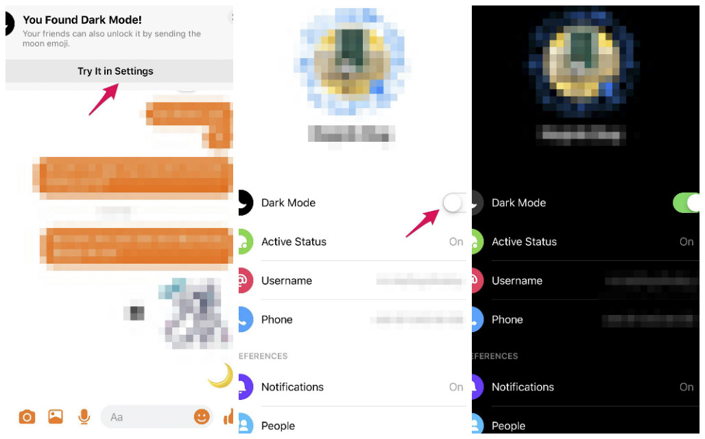 Mặc dù vậy, cộng đồng người dùng Facebook tại Việt Nam vừa phát hiện ra cách để trải nghiệm tính năng theo cách vô cùng bí mật. Theo đó, người dùng Messenger chỉ cần gửi một biểu tượng emoji hình mặt trăng cho một người bạn bất kỳ, chế độ dark mode sẽ xuất hiện ngay trong cài đặt.