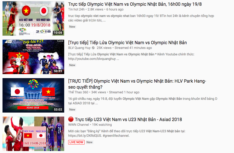 Trước khi ASIAD 2018 khai màn, người hâm mộ thể thao Việt Nam không khỏi lo lắng về việc không được xem các nội dung thi thấu trong khuôn khổ sự kiện thể thao lớn nhất Châu Á khi các nhà đài không thể mua được bản quyền. Thế nhưng, thực tế thì vào khung giờ phát sóng, người hâm mộ chỉ cần thực hiện một câu lệnh tìm kiếm đơn giản là đã có cả chục đường link phát trực tiếp, thậm chí có cả bình luận trên các mạng xã hội như Facebook hay YouTube.